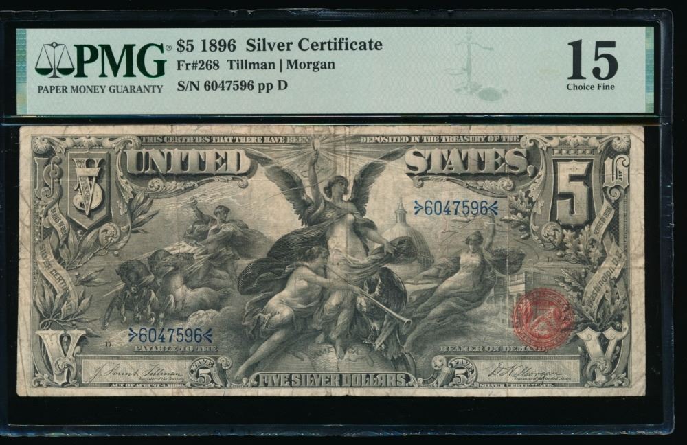 One 1896 $5 Educational Silver Certificate PMG 15.