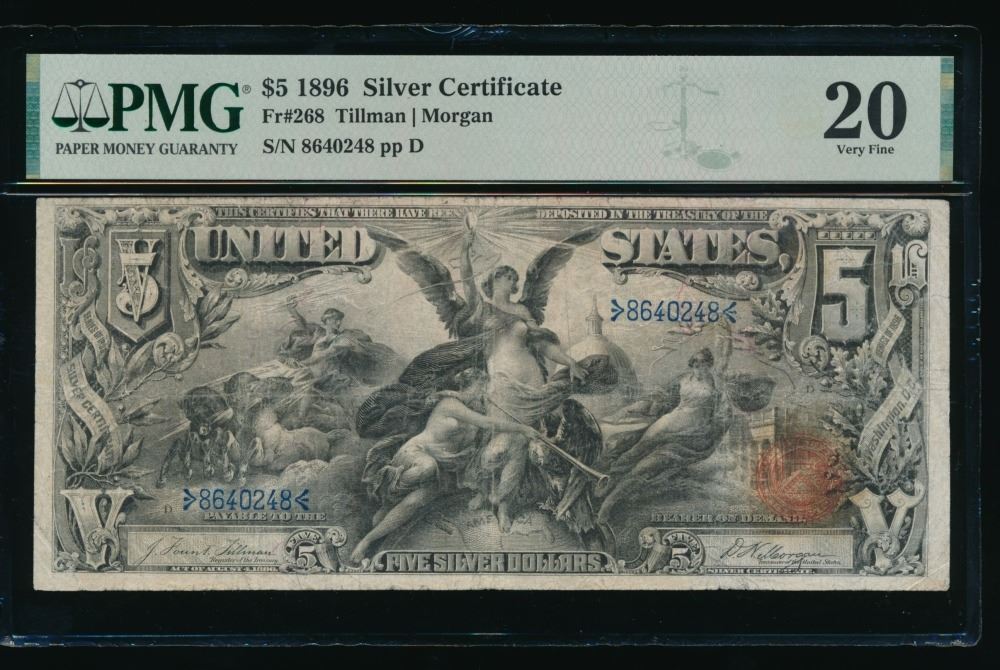 One 1896 $5 Educational Silver Certificate PMG 20.