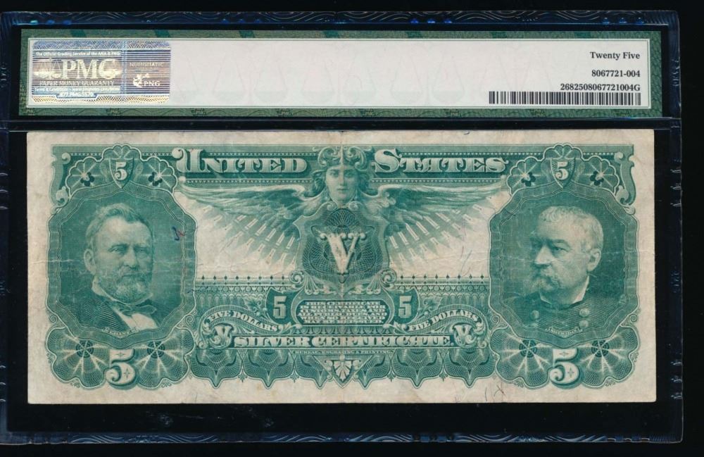 One 1896 $5 Educational Silver Certificate PMG 25.