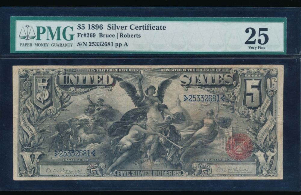One 1896 $5 Educational Silver Certificate PMG 25.