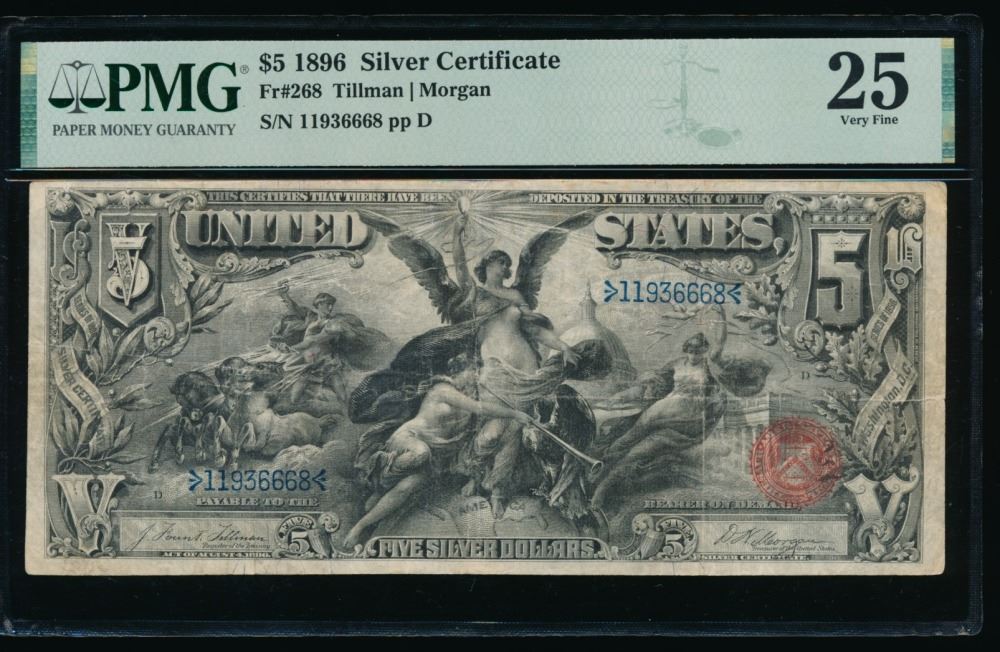 One 1896 $5 Educational Silver Certificate PMG 25.