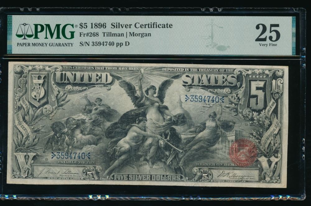 One 1896 $5 Educational Silver Certificate PMG 25.