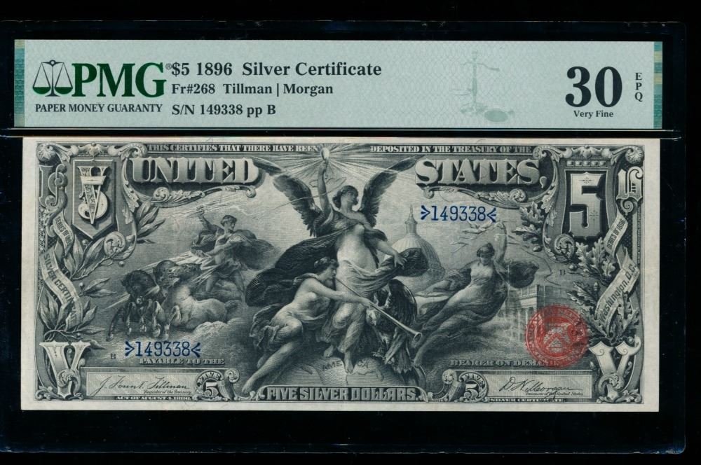 One 1896 $5 Educational Silver Certificate PMG 30EPQ.