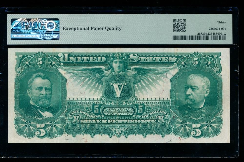 One 1896 $5 Educational Silver Certificate PMG 30EPQ.