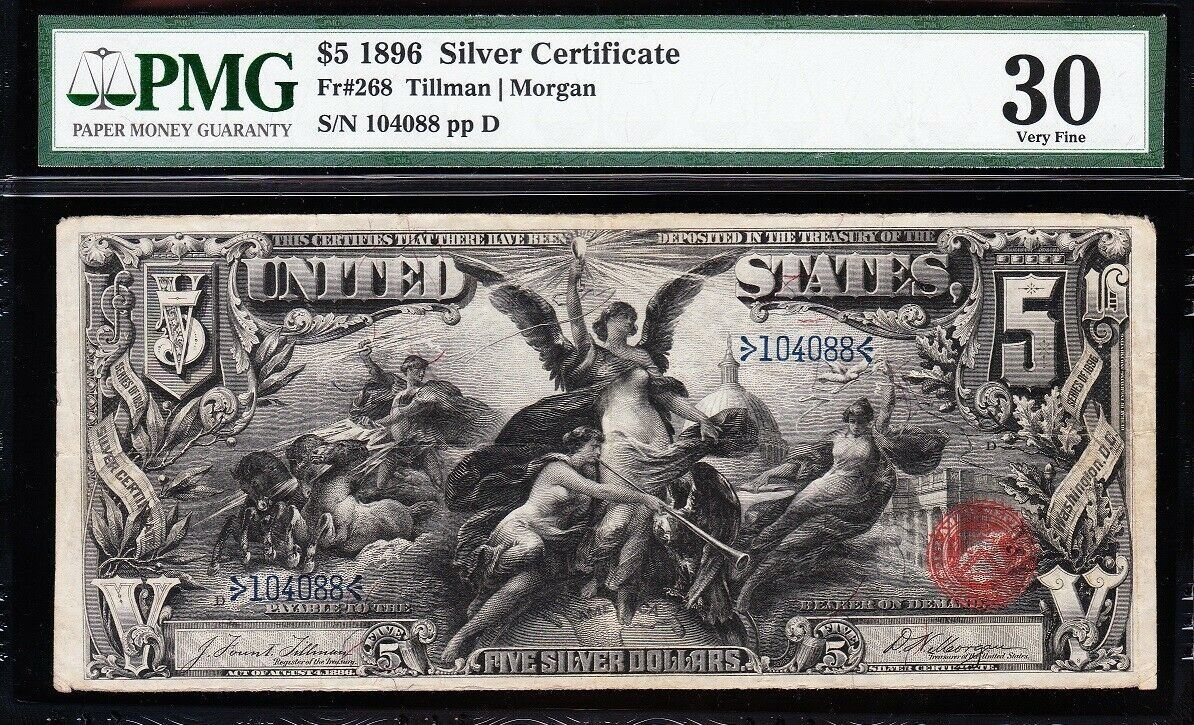 One 1896 $5 Educational Silver Certificate PMG 30.