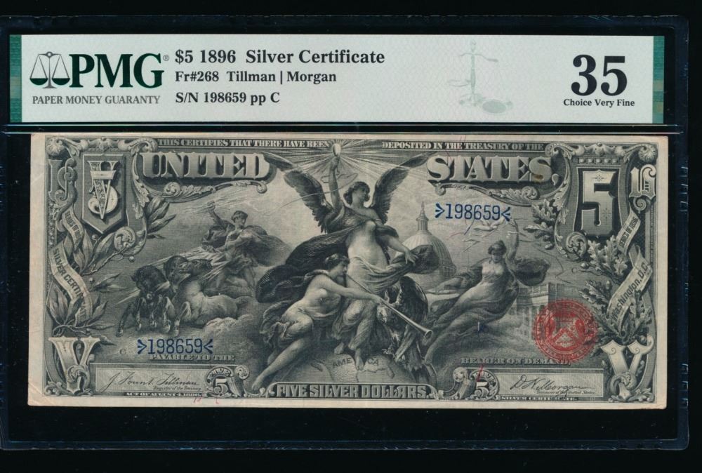 One 1896 $5 Educational Silver Certificate PMG 35.