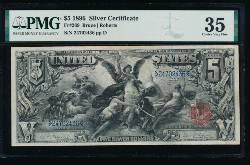 One 1896 $5 Educational Silver Certificate PMG 35.