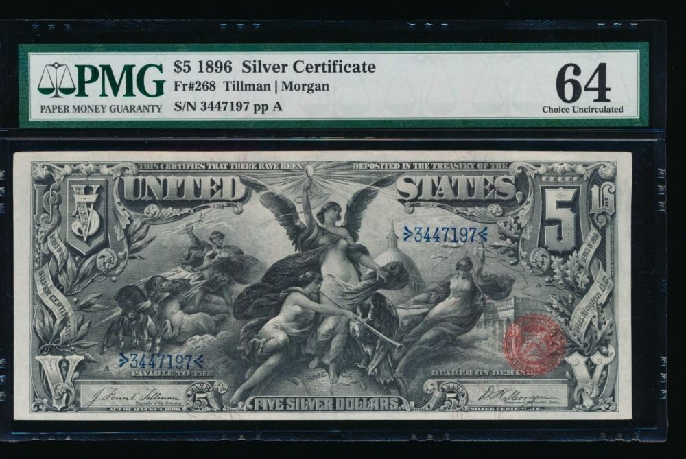 One 1896 $5 Educational Silver Certificate PMG 64.