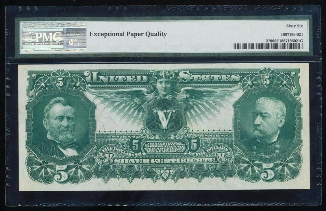 One 1896 $5 Educational Silver Certificate PMG 66EPQ.