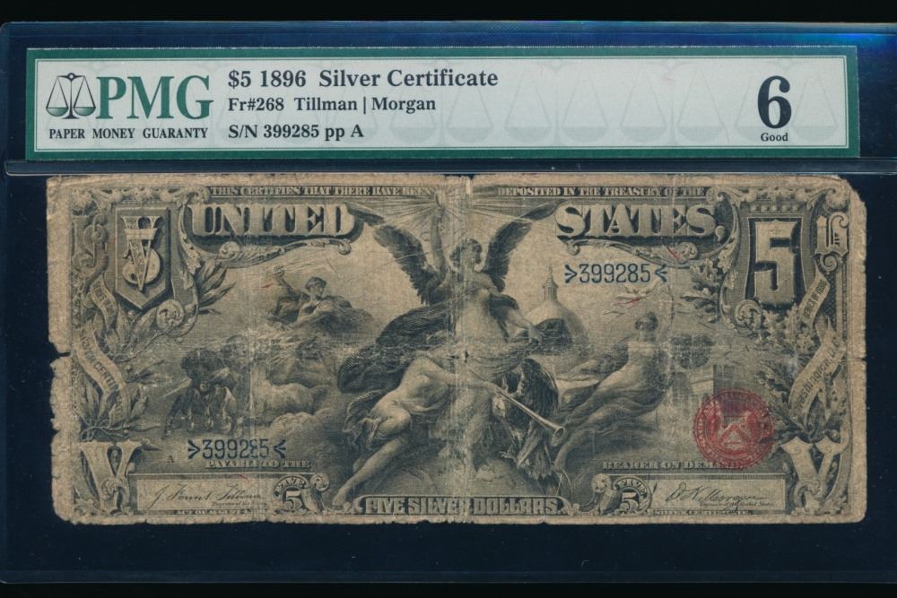One 1896 $5 Educational Silver Certificate PMG 6.