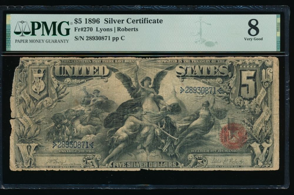 One 1896 $5 Educational Silver Certificate PMG 8.