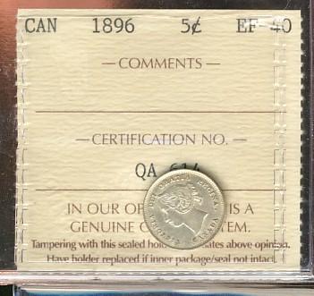 1896 5¢ ICCS EF40, brilliant