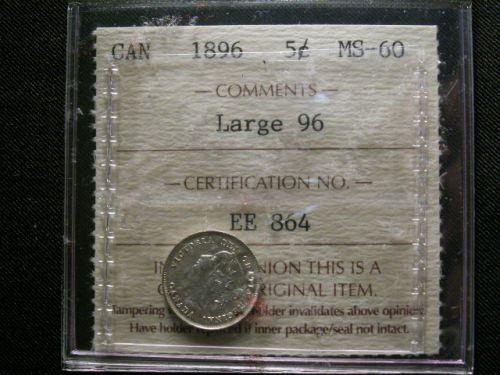 1896 5¢ ICCS MS60. The large 96 variety with remaining lustre.