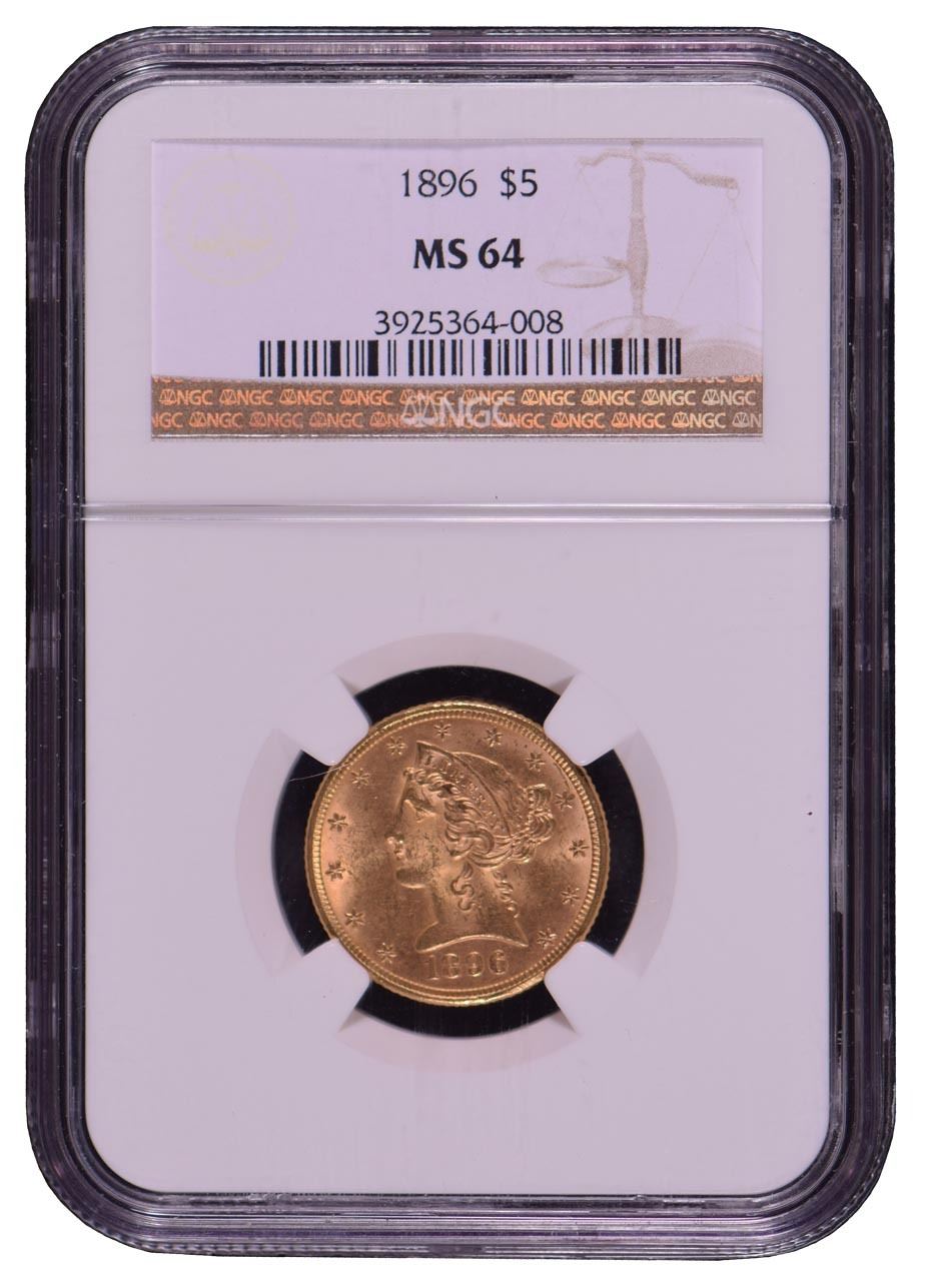 One 1896 $5 Liberty Head Half Eagle Gold Coin NGC MS64.