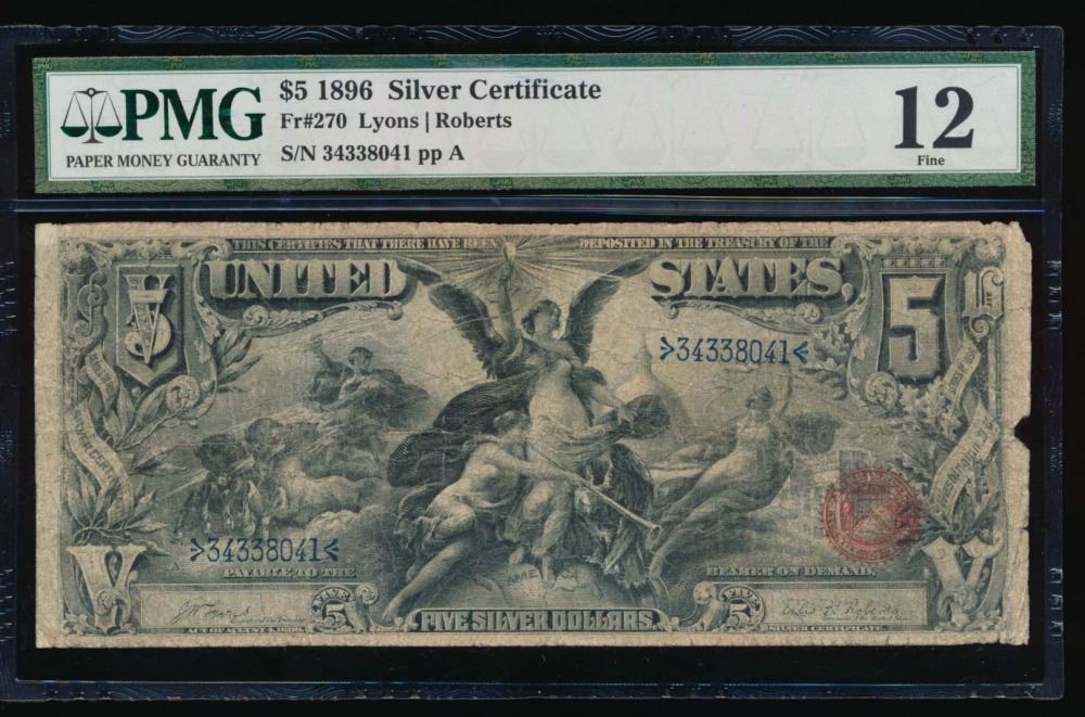 One 1896 $5 Silver Certificate PMG 12.