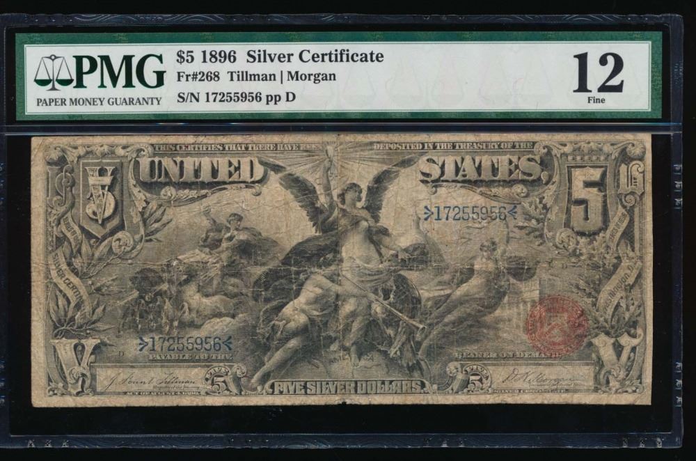 One 1896 $5 Silver Certificate PMG 12.
