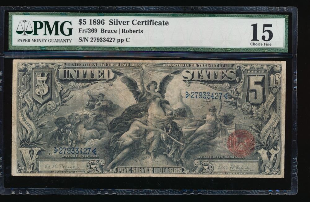 One 1896 $5 Silver Certificate PMG 15.