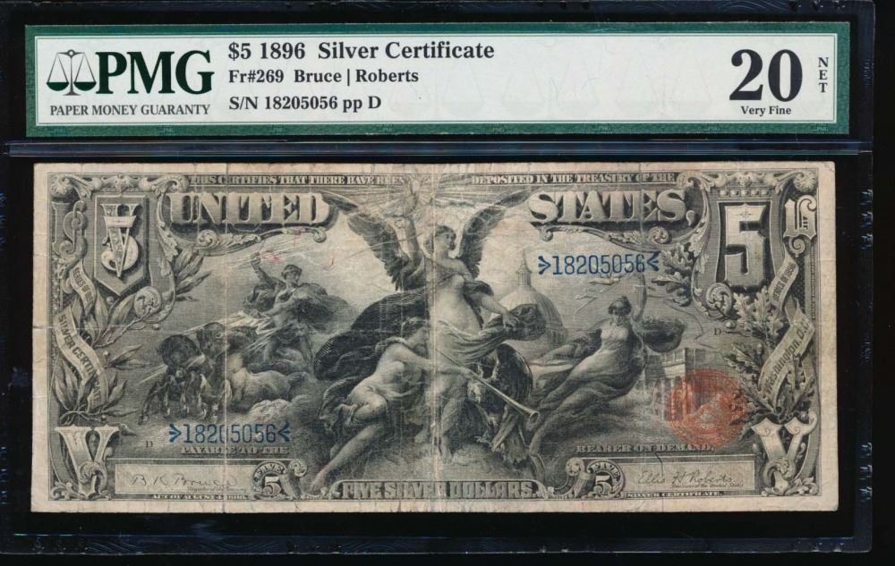 One 1896 $5 Silver Certificate PMG VF20NET.