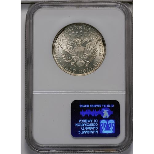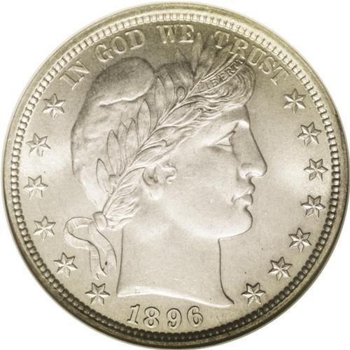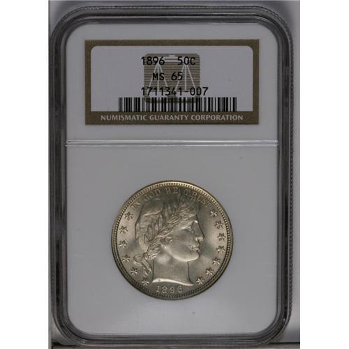 <B>1896<50C> MS65 NGC.</B></I> The 1896 is a popular type coin with collectors as it is relatively available in lower grades and still has the charm of a 19th century date. However, it is surprisingly scarce in Gem condition as seen by the numbers of coins certified by the major services. NGC has only graded eight coins in MS65 with two finer, while PCGS has certified ten Gems with four finer (6/06). This is a lovely MS65 example. Both sides are nearly brilliant with just a hint of pastel-golden color. The striking details show pinpoint definition on each side and one small angling mark is mentioned on the lower part of Liberty's neck.