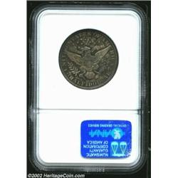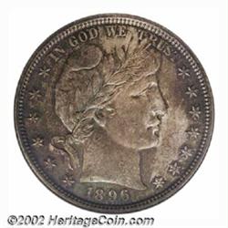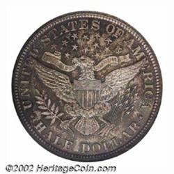 1896 50C MS65 NGC. This coin was previously offered as lot 7281 in our June 2002 Long Beach Signature Sale, where it was cataloged as: "Fully struck in all areas, the fields are prooflike on each side. The reflectivity is especially pronounced as the toning is so deep over each side. Layer upon layer of gray, blue, and rose patina are slathered over each side, and still the prooflike sheen from the fields shines through. A lovely and obviously original Gem Barber Half." Population: 7 in 65, 2 finer (7/02). Important notice: We expect to be auctioning lots at the rate of 200-250 per hour. Sometimes eBay Premier live bid software cannot keep up with that pace, so we strongly recommend that you place a realistic proxy bid now as insurance to avoid disappointment. Also please note that all Heritage/CAA lots purchased through eBay Premier carry a 20% Buyer's Premium. Please make sure you read the Terms and Conditions.