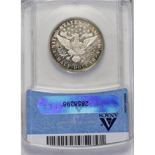 <B>1896<50C> PR64 Cameo ANACS.</B></I> The watery, elegantly toned mirrors and standout devices create a pleasing cameo effect. This proof's patina is an alluring mix of champagne, russet, and electric blue.<BR><I>Ex: Stack's, 2/51, lot 144.</B></I><BR><I>From The Redfjord Collection.</B></I>