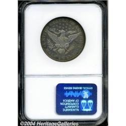 <B>1896<50C> PR64 NGC.</B></I> This is a lovely half dollar with "album toning" consisting of concentric rings of russet, blue, and amber on the obverse. The reverse has pale gold and heather coloration. A wonderful example. We believe that this may be a candidate for a "Cameo" designation by the grading services and may be worth a second look. <BR><BR><B>Important notice:</B> Heritage usually auctions material at the rate of 200-250 lots per hour. On some occasions eBay Live bid software or the Internet may not be able to keep up with the pace of the auction. We recommend placing a realistic absentee bid now as insurance to avoid disappointment. Occasionally the auctioneer may eliminate or reject an eBay Live bid, and the auctioneer may also reopen a lot after the close of the eBay live bidding (usually because we missed an audience bid), and may reject your bid even if it shows you as the winning bidder. By bidding via eBay Live, you agree that Heritage may award the lot to another bidder at its sole discretion under the circumstances described above or any other reasonable circumstances. Since eBay bids are not shown to us until we open the lot on the floor, we treat those bids just like floor bids. In most cases the floor responds before the eBay bid is presented to us, due to Internet lag time, so for consistency we have made it a policy that floor bids are always considered first over tie eBay live bids. Also please note that all Heritage lots purchased through eBay Live carry a 20% Buyer's Premium. Please make sure you read the Terms and Conditions before you bid. </span></font></tr></table></td></tr></table>
