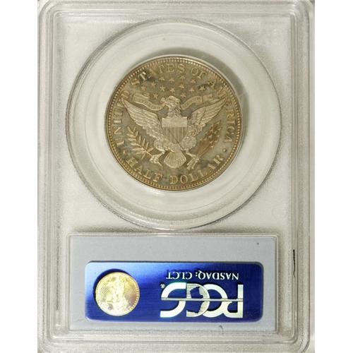 <B>1896 50C PR64 PCGS.</B></I> Pale golden toning graces the upper part of the obverse and the rims. The rest of that side is untoned, though the reverse has a measure of cloudy greenish-blue as well. Choice and exactingly struck.<BR><BR><b>Shipping:</b> Coins & Currency (<a target="_blank" href="http://www.heritageauctions.com/common/shipping.php">view shipping information</a>)
