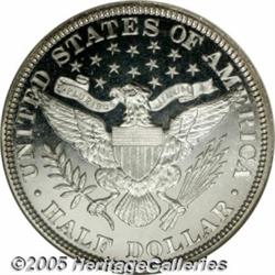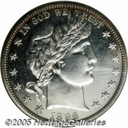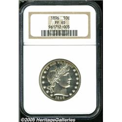 <B>1896 50C PR65 NGC.</B></I> The 1896 and 1898 are two of the best produced dates in the Barber half series. Even though this piece is not labeled as a Cameo or Ultra Cameo, as is often the case, the surfaces display a moderate two-toned contrast between the fields and devices. The fields are especially deep in their mirrored reflectivity. Almost completely brilliant, there is just the slightest hint of golden toning at the top of the obverse. An attractive type coin that represents good value.<BR><I>From The Richard J. Chouinard Collection of United States Coins, Part Three.</B></I>