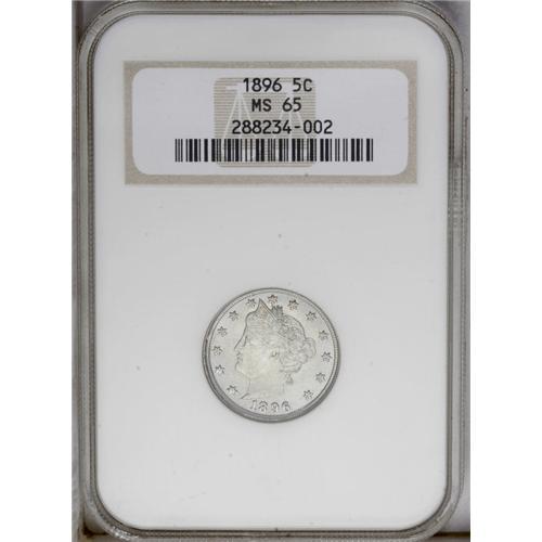 1896 5C MS65 NGC. Lustrous and bright with light green 1896[5C] MS65 NGC.