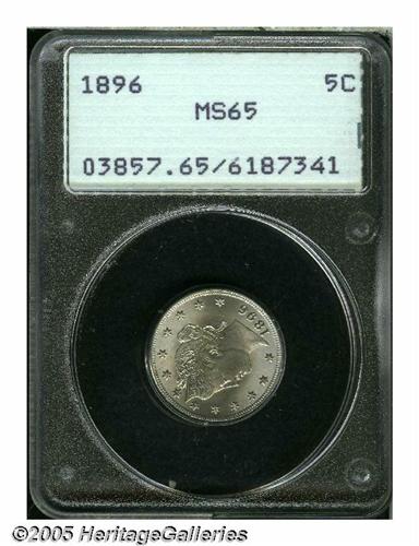 1896 5C MS65 PCGS. Well frosted, satiny surfaces