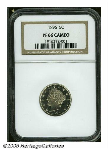 1896 5C PR66 Cameo NGC. Fully struck, except on a