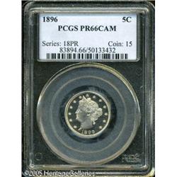 <B>1896 5C PR66 Cameo PCGS.</B></I> Bright, virtually unmarked surfaces display a thin film of champagne color. Lot:5930