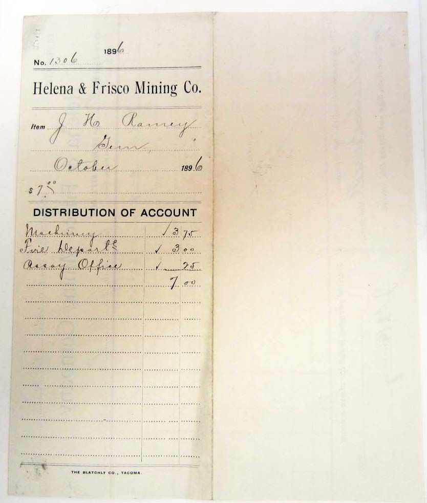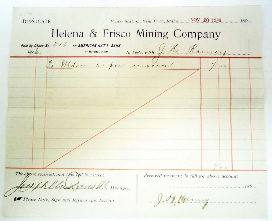 1896 BILLHEAD RECEIPT HELENA & FRISCO MINING COMPANY
