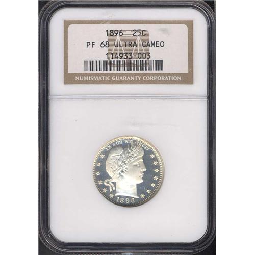 A frosty head, eagle and devices, against gem proof fields all from an original mintage of 762 coins. This coin is one of thirteen in this grade, with just two certified finer. Priced by CU at $19,500.
