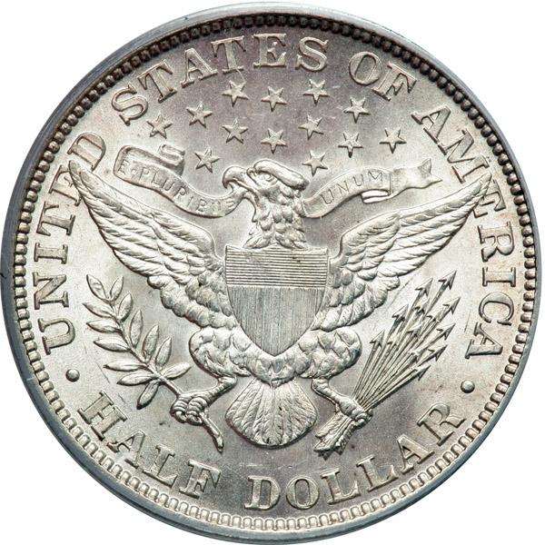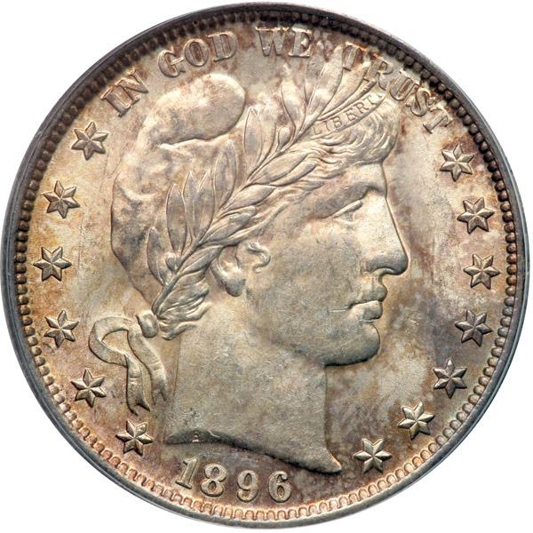 1896. PCGS graded MS-63 PQ. Frosty with light gold obverse toning. A choice, lustrous coin. Pop 29; 44 finer (PCGS # 6474) .