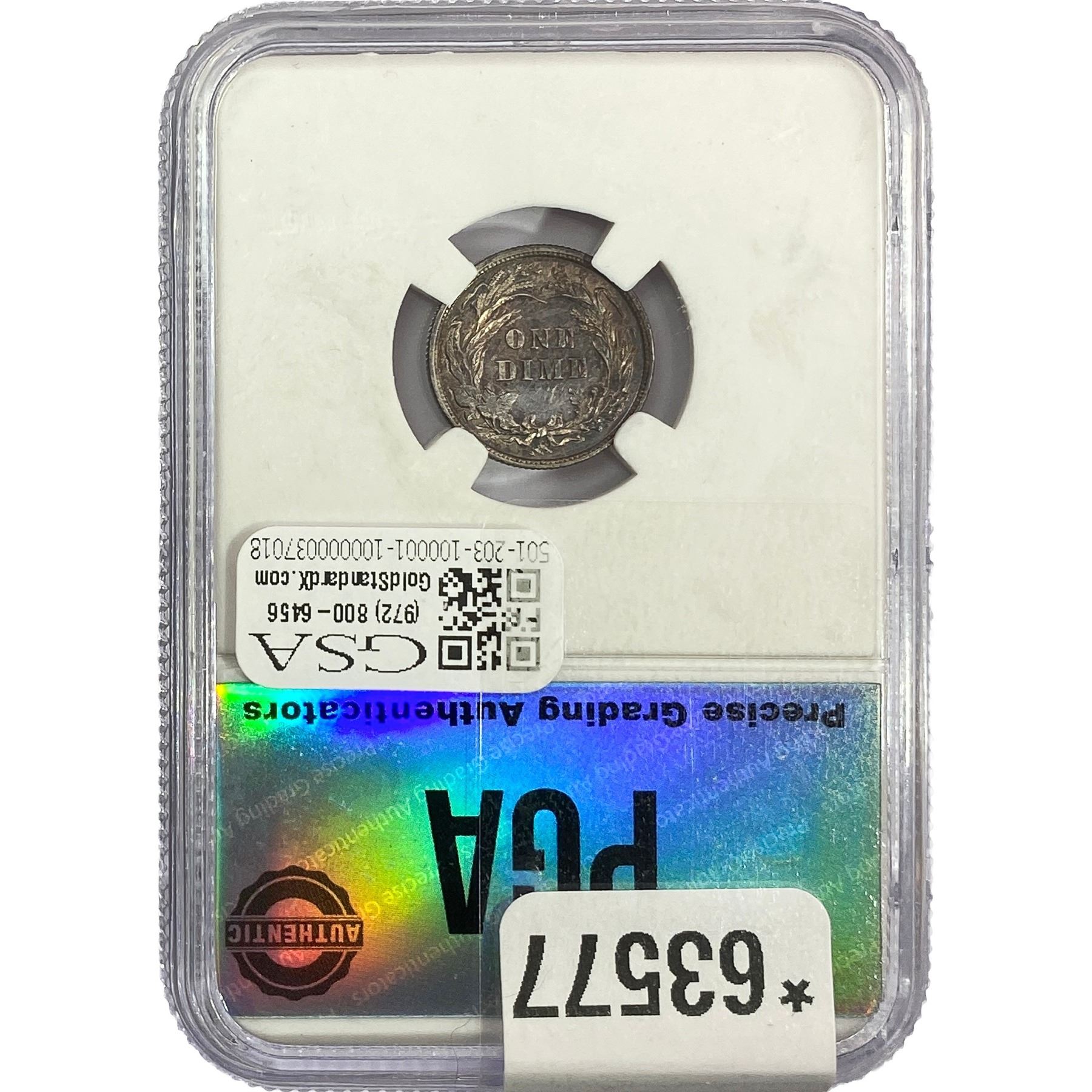 COINS AND CURRENCY LISTED IN GSA’S CATALOG AS GRADED AND ENCAPSULATED BY PCGS, NGC, ANACS, ICG, PCGS CURRENCY, PMG, PCGS BANKNOTE GRADING, CMC OR ANY OTHER THIRD-PARTY GRADING SERVICE ARE LIKEWISE SOLD “AS-IS” EXCEPT AS EXPRESSLY SET FORTH HEREIN. ALL THIRD-PARTY GRADING SERVICE GUARANTEES, INCLUDING AUTHENTICITY, ARE THE SOLE RESPONSIBILITY OF THE THIRD-PARTY GRADING SERVICE AND NOT WARRANTIES OR GUARANTEES OF GSA. BIDDERS SHOULD CONTACT THESE THIRD-PARTY GRADING SERVICES DIRECTLY WITH RESPECT TO ANY CLAIMS OR QUESTIONS THEY MAY HAVE CONCERNING THEIR GUARANTEES AND WARRANTIES. BIDDERS ACKNOWLEDGE AND AGREE THAT AUCTIONEER IS NOT BOUND BY OR LIABLE FOR ANY OPINION OR CERTIFICATION BY ANY THIRD-PARTY GRADING SERVICE. REMOVAL OF A PRODUCT FROM ITS PROTECTIVE CASING OR HOLDER OR ALTERATION OF ANY COIN HOLDER WAIVES ALL RIGHTS CONCERNING THE PRODUCT CONTAINED THEREIN.