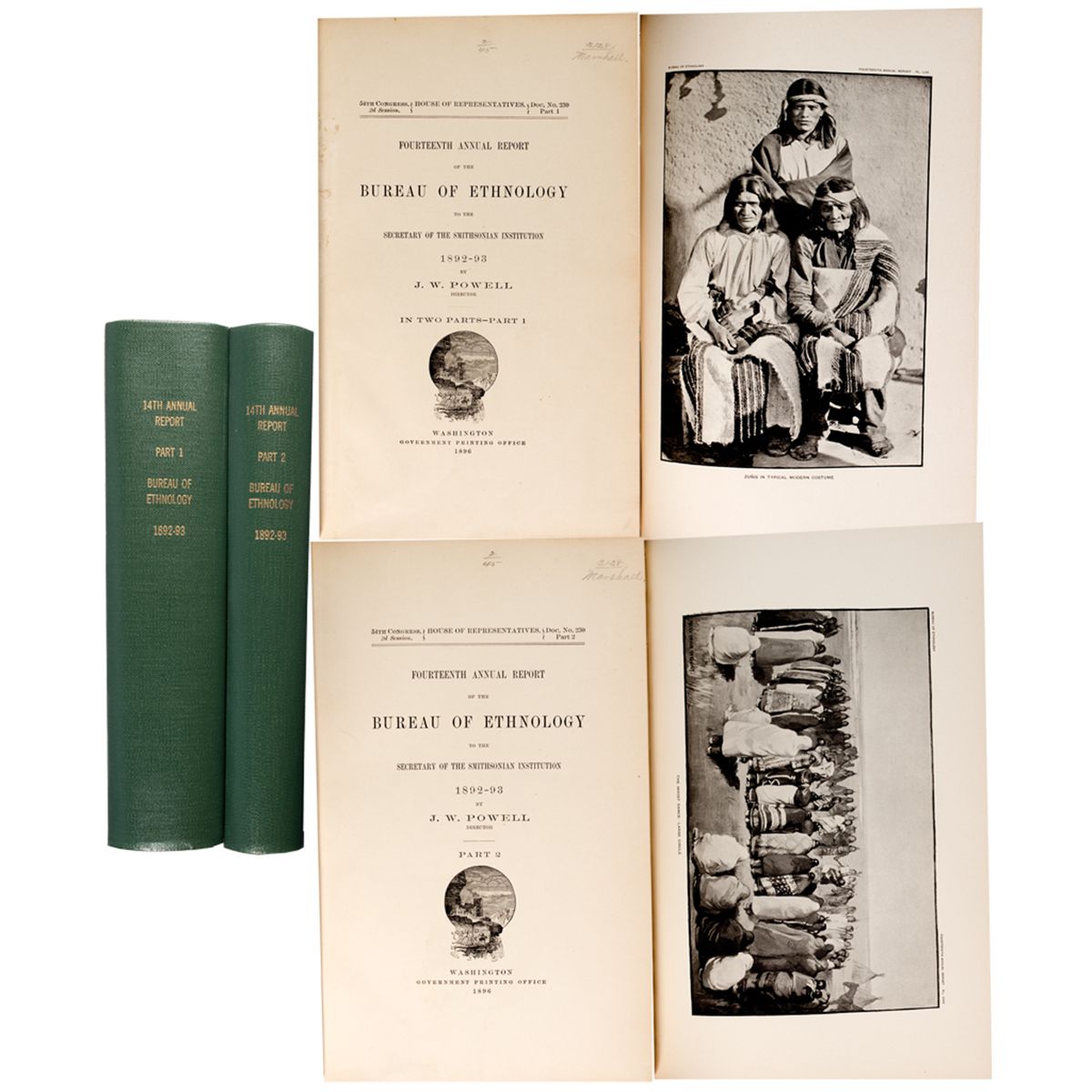 Note: Volume I and II are not commonly found together. Though in modern bindings, this set shows the diligence of the Bureau of Ethnology to pair varied research from diverse and highly skilled authors/ethnographers. - Vinegar Collection