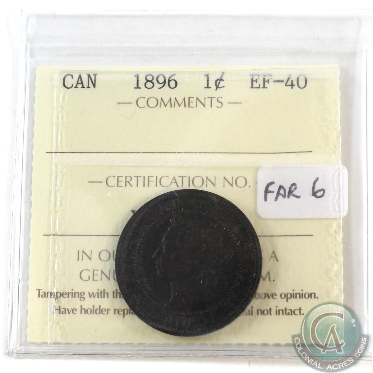 1896 Canada Far 6 1-cent ICCS Certified EF-40