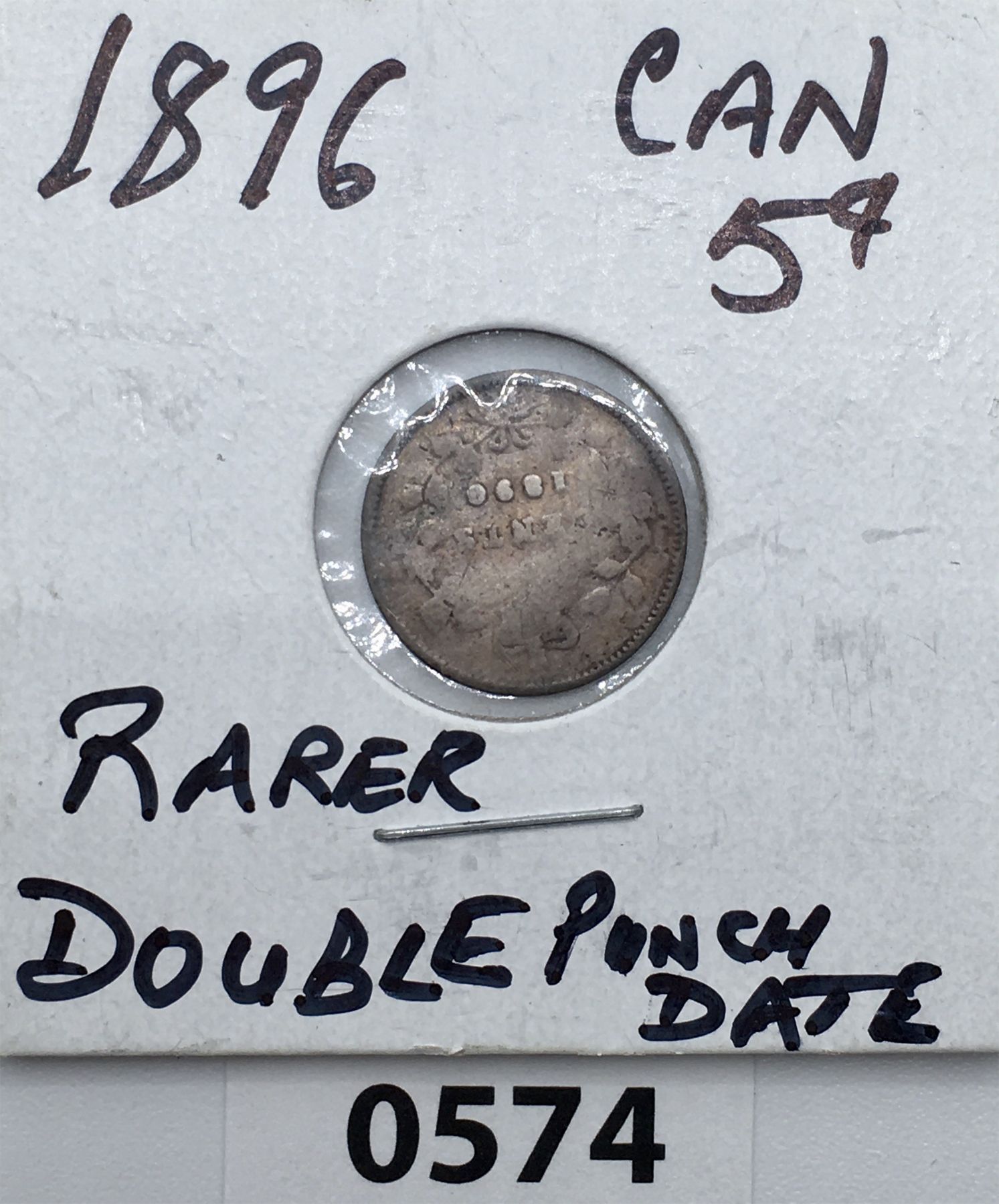 1896 DOUBLE PUNCHED DATE CANADIAN 5 CENT SILVER NICKEL