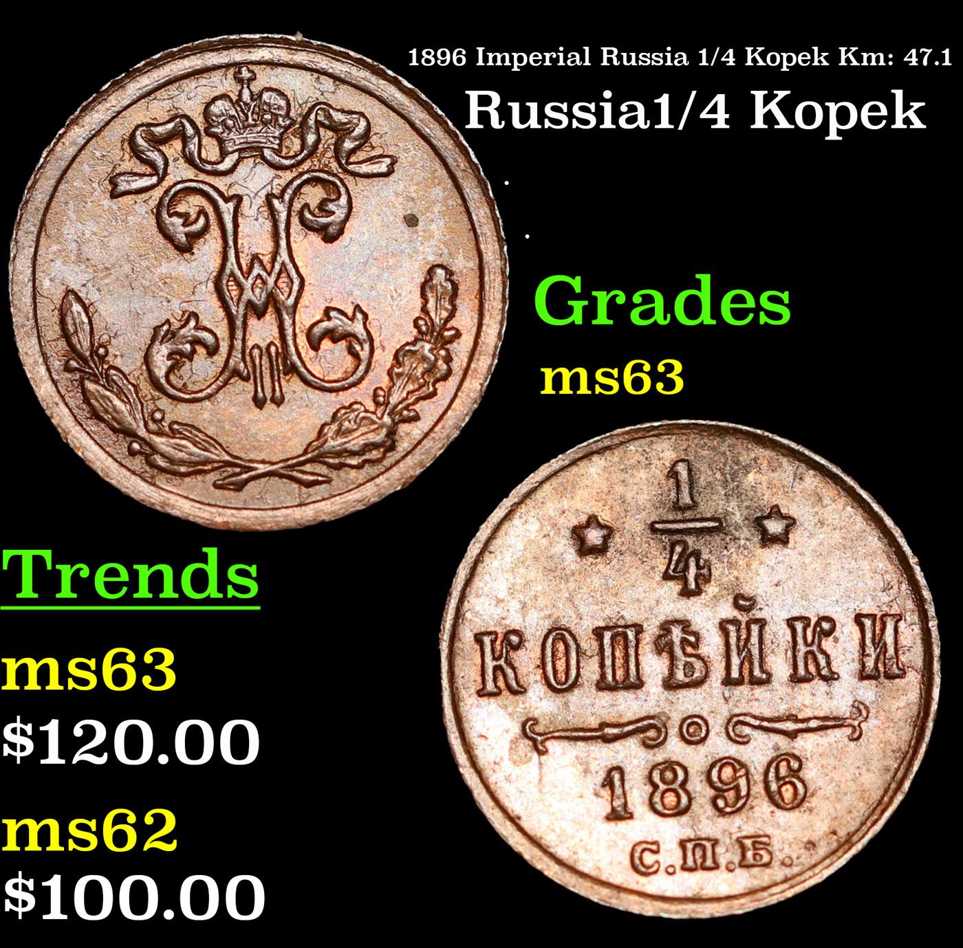 1896 Imperial Russia 1/4 Kopek Km: 47.1 Grades Select Unc.
