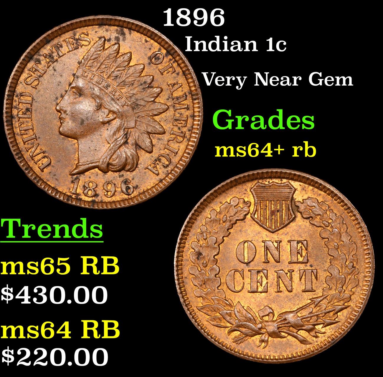 1896 . Very Near Gem Indian Cent 1c Grades Choice+ Unc RB.