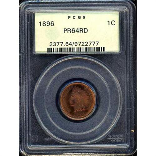 <b>1896 Indian Head Cent. PCGS graded PF64 R.</b> A pleasing mixture of deep reds and purple iridescence puts fire into the life of this very choice Proof Indian cent <b>(PCGS # 2377)</b>