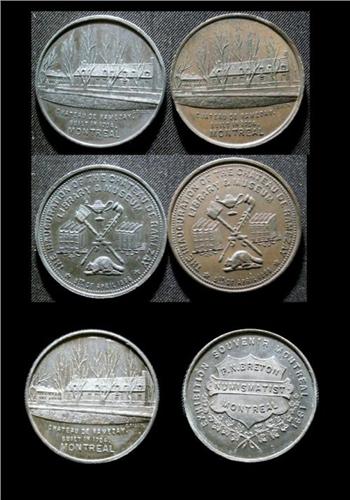 1896 Lot of three medals, two commemorating the Inauguration of the Château de Ramzey Library and Museum and the third to commemorate the Montreal Exhibition. Two White medal and one Copper example. Also includes PN Breton Exhibition Souvenir Montreal