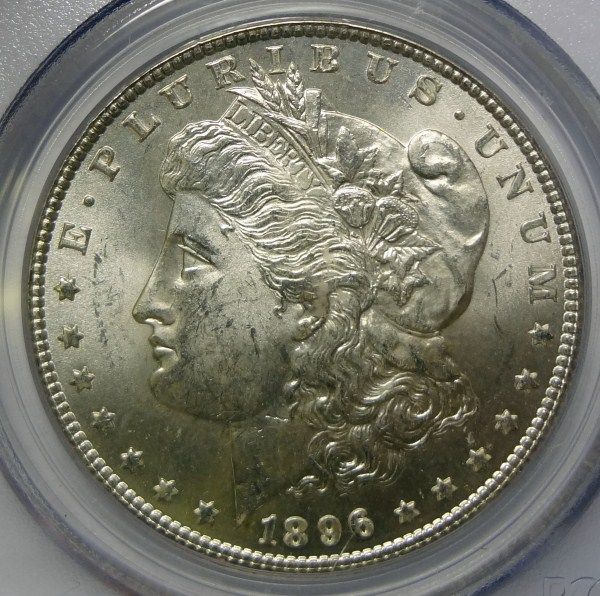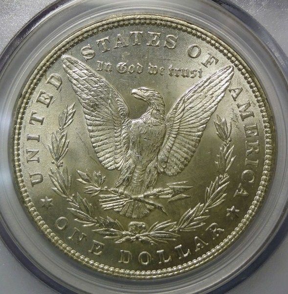 A NICE HIGH GRADE FOR THIS VERY LUSTROUS MORGAN SILVER DOLLAR, ESTIMATE $100.00 TO $110.00