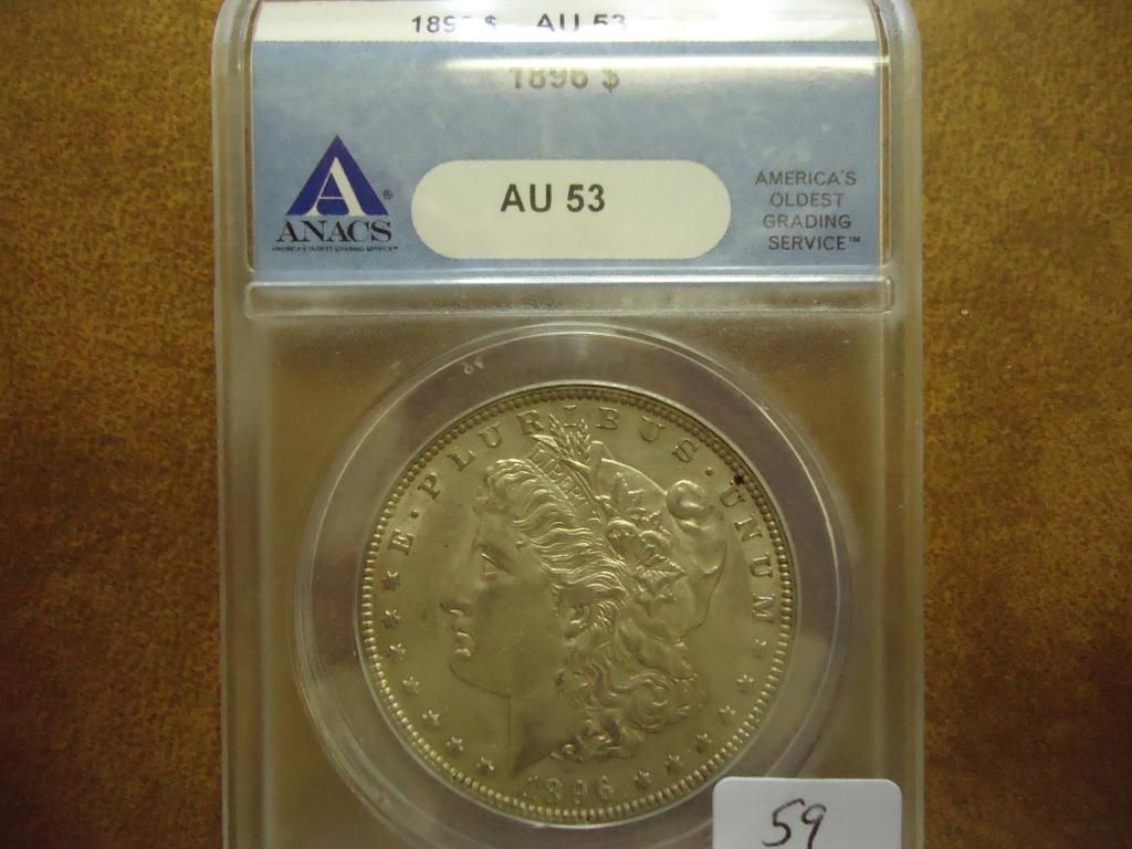 1896 MORGAN SILVER DOLLAR ANACS AU53
