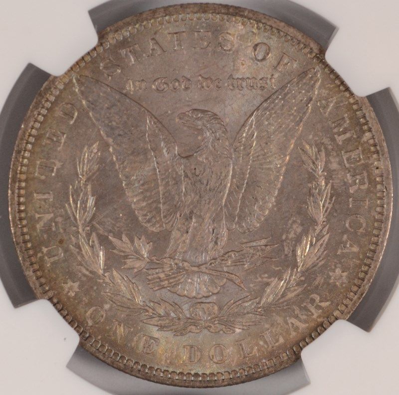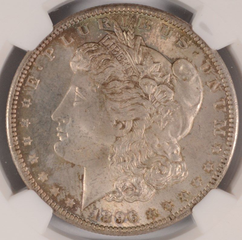 1896 MORGAN SILVER DOLLAR, NGC MS-65 GEM WITH COLOR!