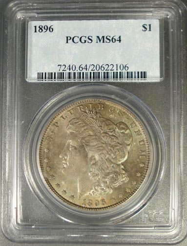 1896 MORGAN SILVER DOLLAR, PCGS MS64 GREAT COLOR