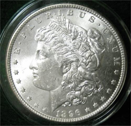 1896 MORGAN SILVER DOLLAR. MS 65.