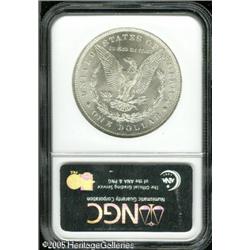 <B>1896<img border='0' src='http://www.heritagecoins.com/images/star.gif' width=10 height=10>$1 MS66 NGC.</B></I> A beautifully preserved premium Gem, well struck and richly lustrous. Essentially untoned save for faint milky toning scattered here and there, and exquisitely preserved even with a barely detectable scrape on Liberty's jaw. Lot:10483