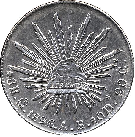 1896 Mo AB MEXICO SILVER 8 REALES-NICE UNC